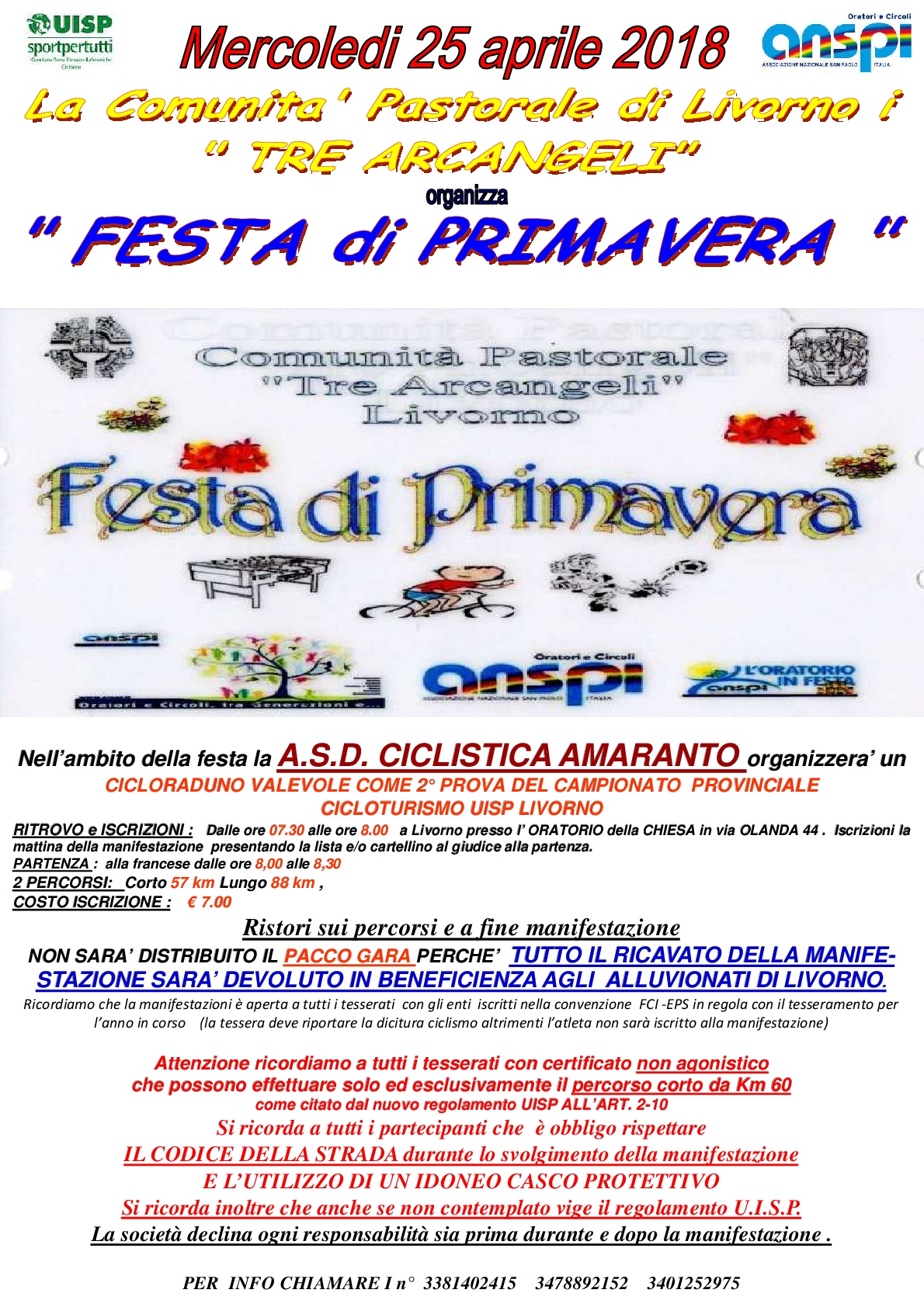valevole come seconda prova del campionato provinciale cicloturismo uisp Livorno 2018