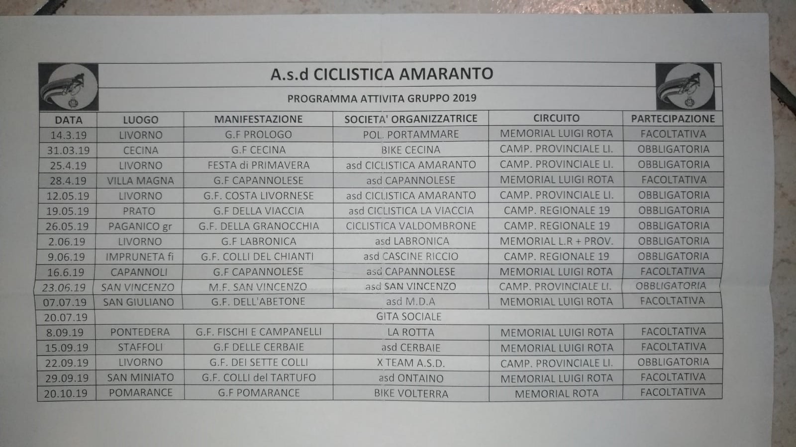 Buongiorno, sono il Sig. Giuliano GAZZETTI, Presidente della "ASD CICLISTICA AMARANTO". Nella nostra breve storia ciclistica (fondata nel 2003), abbiamo costruito pian piano un gruppo di amanti della bicicletta. L'ASD si fonda principalmente sulle risorse umane ma purtroppo con solo quelle non si va da nessuna parte, per questo autofinanziandosi abbiamo raggiunto risultati eccellenti, dopo soli 3 anni di vita, ci siamo aggiudicati il campionato provinciale di cicloturismo, nello stesso anno abbiamo raggiunto il terzo gradino del podio nel Campionato Regionale disputato in prova unica a Chiusi. Non mi dilungo più di tanto aggiungo solo che di campionati provinciali ne abbiamo vinti parecchi quasi tutti consecutivi, e cosa più importante ci siamo aggiudicati per 3 volte il primato Iridato nel CAMPIONATO REGIONALE l'ultimo proprio nel 2018, pertanto Campioni in carica. Aggiungo in fine che siamo l'unica società NON FIORENTINA che si è aggiudicato questo titolo.